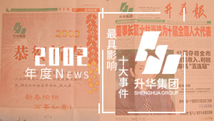 一、夏士林當(dāng)選十屆全國人大代表。2003年1月22日,在浙江省第十屆人大一次會(huì)議上夏士林光榮當(dāng)選為十屆全國人大代表。 二、升華三年發(fā)展藍(lán)圖繪就。2004—2006年升華集團(tuán)三年發(fā)展規(guī)劃出臺(tái):到2006年底,公司力爭(zhēng)達(dá)到銷售收入42億元,利潤3.16億元,實(shí)現(xiàn)翻一番?! ∪?、…